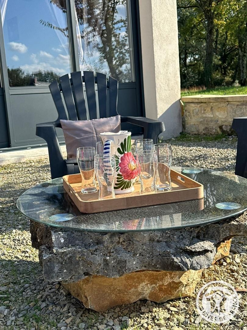 Esta casa rural de 120 m² ha sido completamente renovada con materiales de calidad y decorada con gusto. Dispone de mesa de ping-pong, petanca, bicicletas para niños y patinetes.